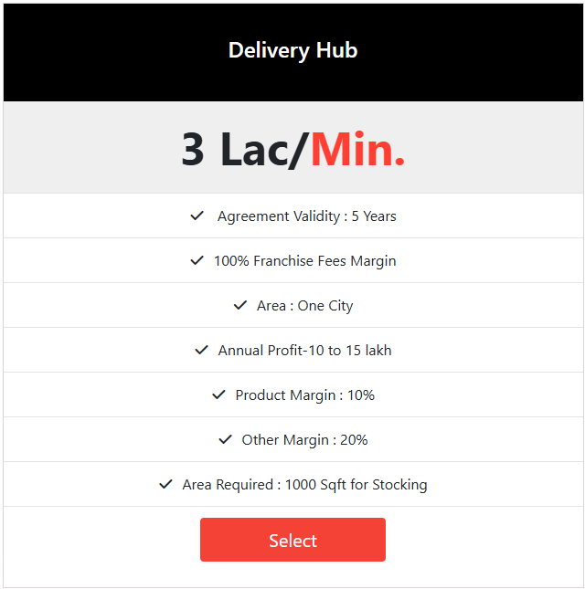 Typical cost items: franchise or onboarding fee, refundable security deposit, initial working capital, vehicle or fleet lease/purchase (if required), technology and MIS fees, rent for dark-store or micro-hub (if applicable), staffing and training costs, and local marketing.
